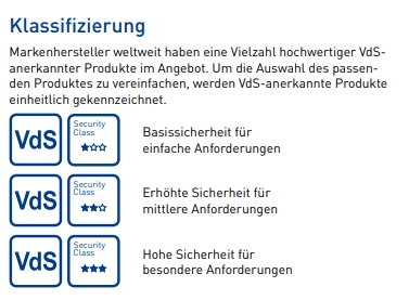 Für Highend - Schutz wählen Sie die VDS Ausführung. DIese Version ist geprüft und zertifiziert und gehört zu den Sichersten System in Deutschland.