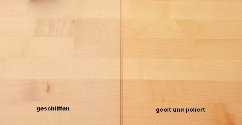 Bei geölten Oberflächen empfiehlt sich eine gelegentliche Nachbehandlung mit Holzöl.