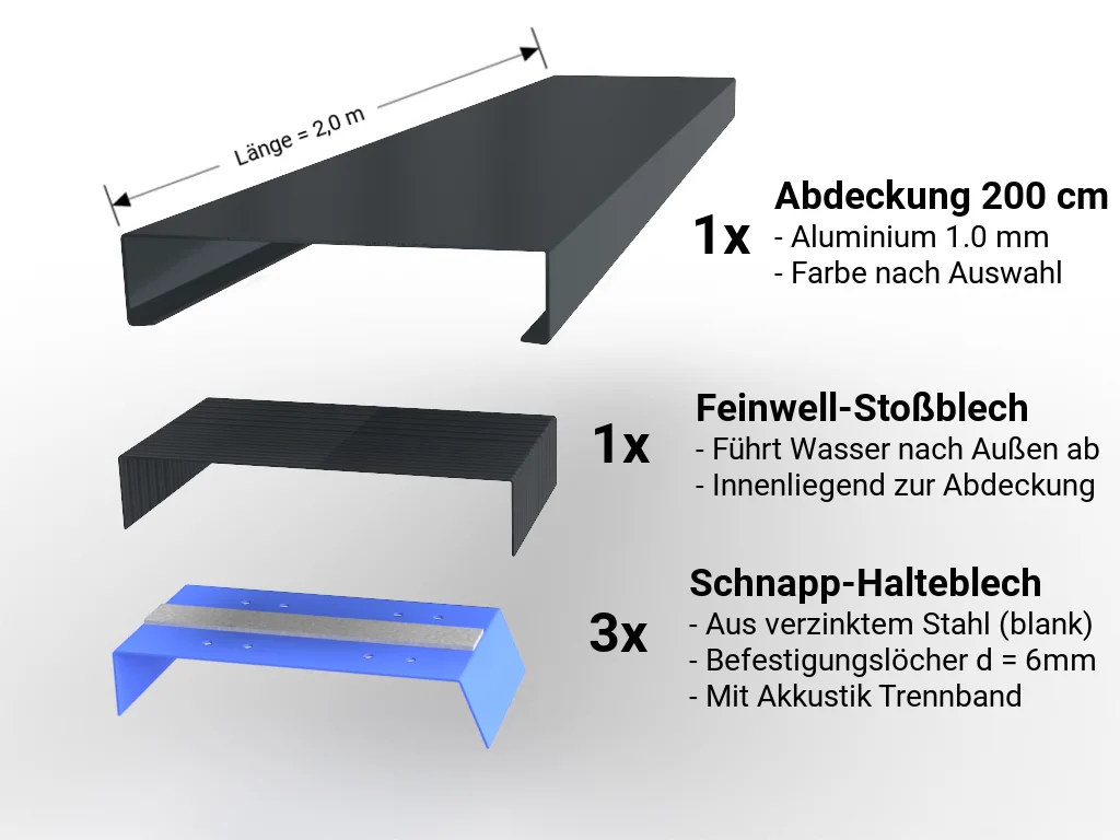 Abdeckung 1,0 m inkl. 2x Schnapphalter und 1x Stoßblech